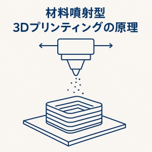 材料噴射型の3Dプリンティング技術(Material Jetting, MJ)は、3Dプリンティング(立体造形)の方法の一つで、インクジェット印刷技術に似た方式で材料を層ごとに積み重ねていく方法です。この技術は、非常に高い解像度と精密さで物体を造形することができ、多色や複数材料を用いたプリントが可能な点が特徴です。