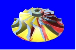 | ■耐久性が求められるインペラ羽根、試作されたモデルを量産用の金型設計に3Dスキャンからのリバースエンジニアリング技術利用。 |