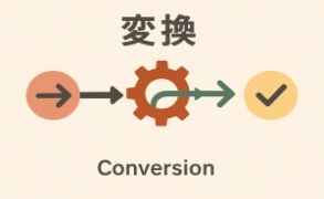 | 動作原理,電気,力,データ,信号 | 変換,内部プロセス | 出力,動きや成果 |