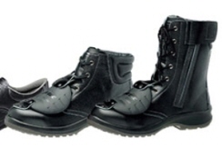 ・足を重い物の落下や鋭利な物から守るために使用されます。鉄板入りのつま先や防水加工が施されたものが一般的です。