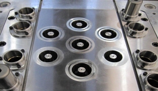 金属粉末やセラミックス粉末を高圧で成形し、焼結して固体部品を作るための金型。