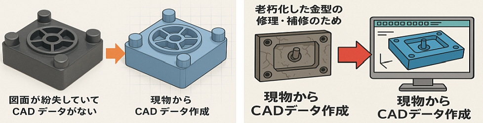 既存の金型(射出成形・ダイカスト・プレス金型など)を デジタル化 → 解析 → 再設計・再製造 するプロセスのことです。